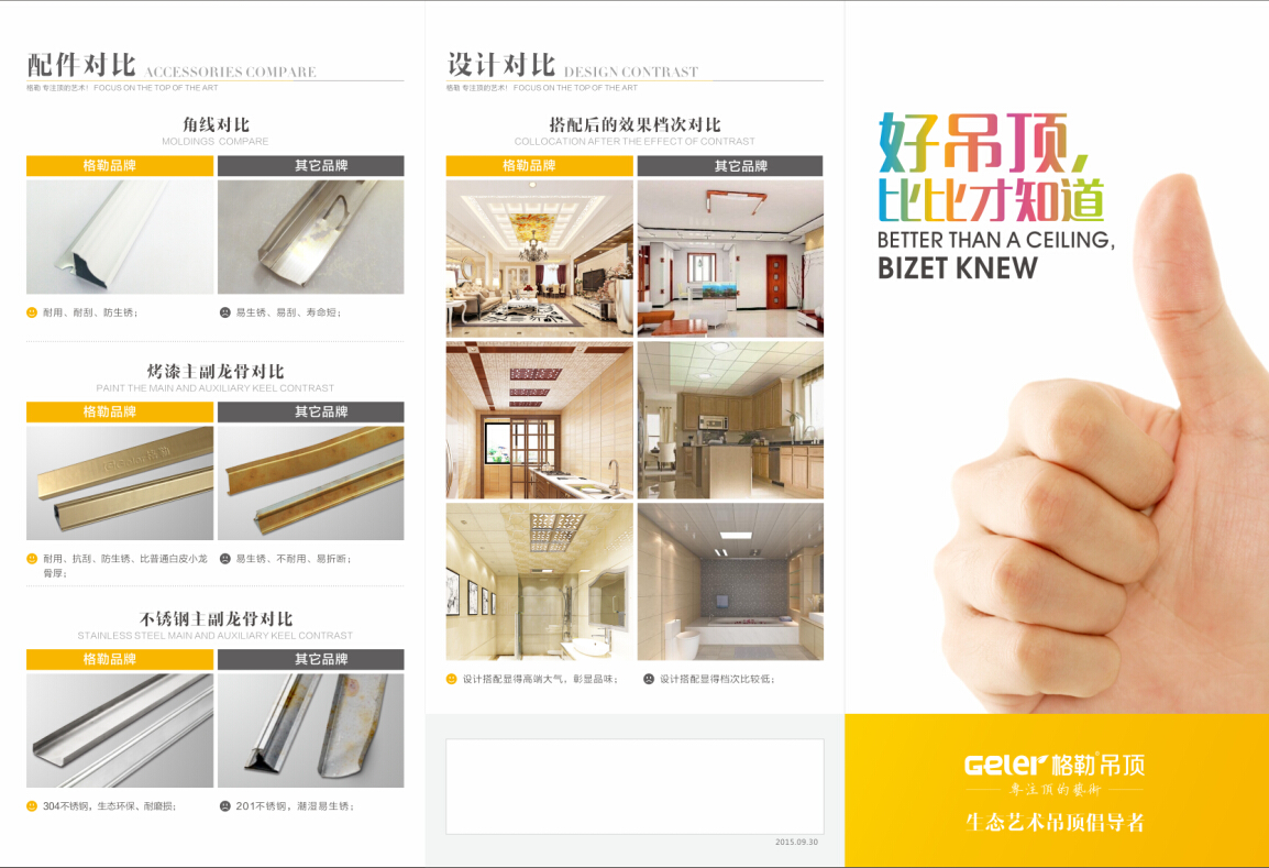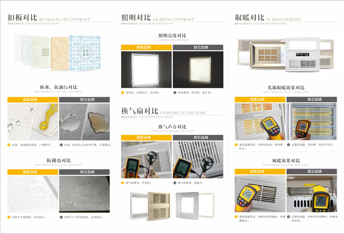 格勒集成吊頂通過(guò)不斷的自我研發(fā)和國(guó)外引進(jìn),目前在產(chǎn)品質(zhì)量方面處于行業(yè)領(lǐng)先地位。誰(shuí)是了“李逵”誰(shuí)是“李鬼”我們比比就知道!